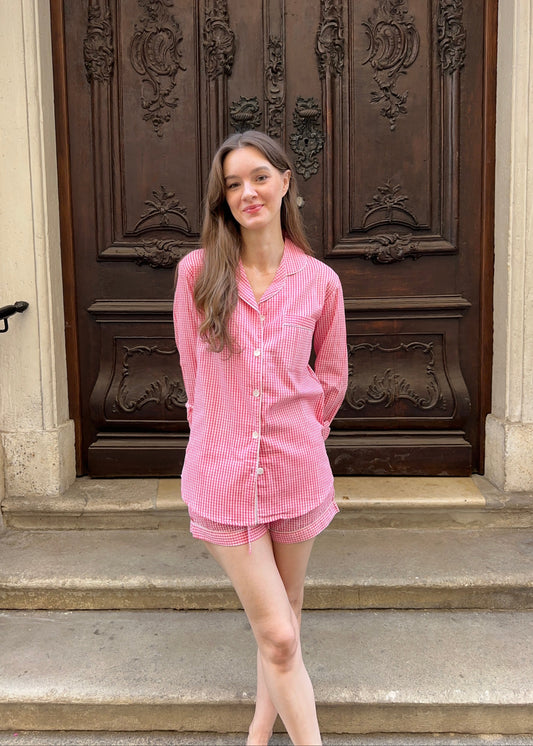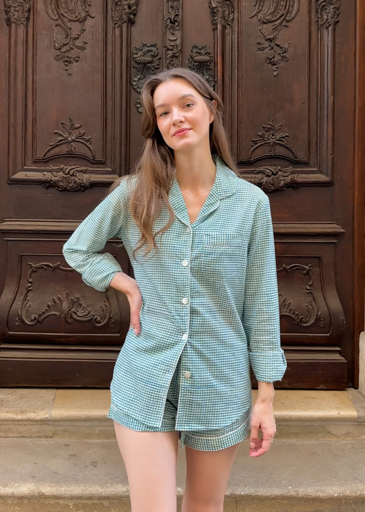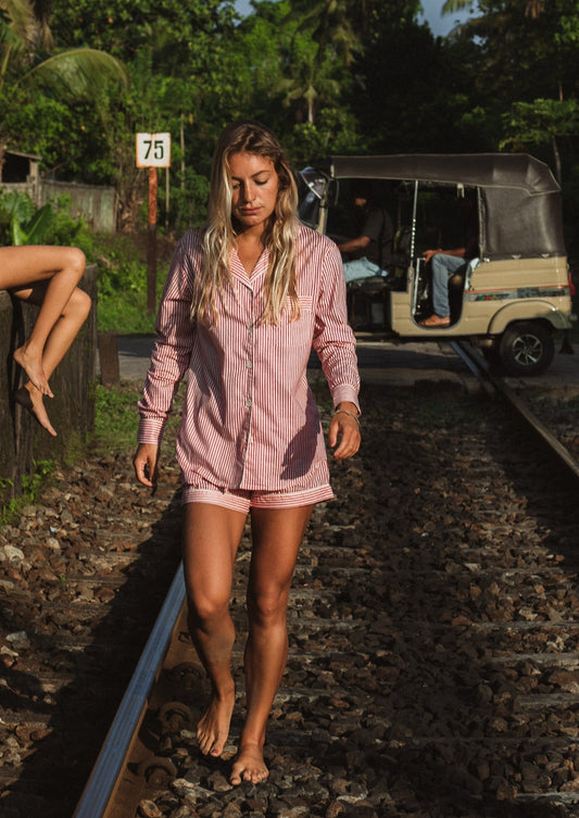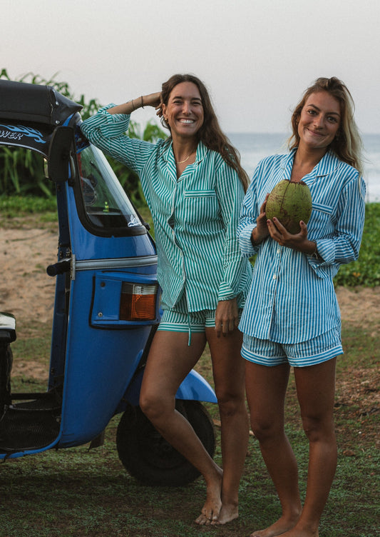 Unsere Produkte entstehen aus vorgedruckten Stoffen, die oft als Überschuss oder „Deadstock“ gelten und bereits die Blockprint-Technik durchlaufen haben – häufig reicht der Stoff nur für eine limitierte Auflage von drei Produkten.