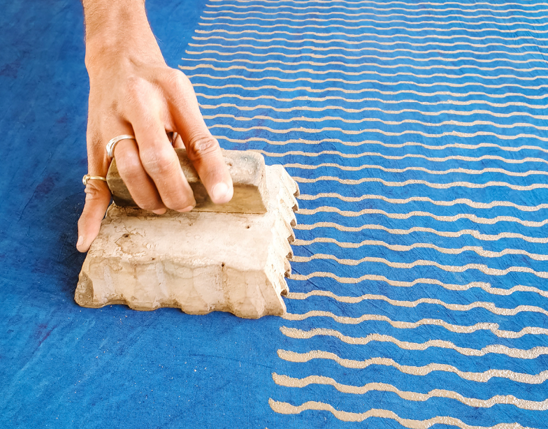 Our products are crafted from pre-printed fabrics, often considered surplus or 'Deadstock,' that have already undergone the Blockprint technique — crafted by skilled hands, not machines.